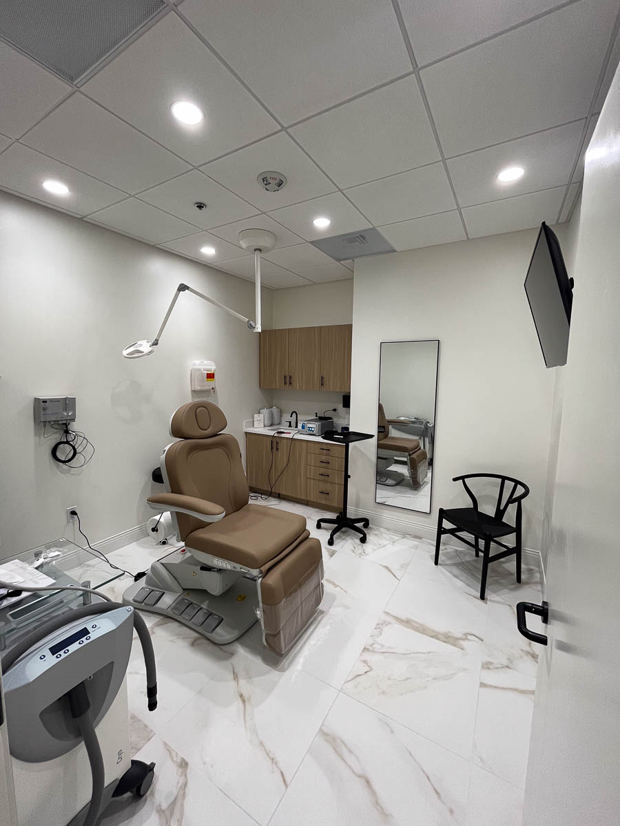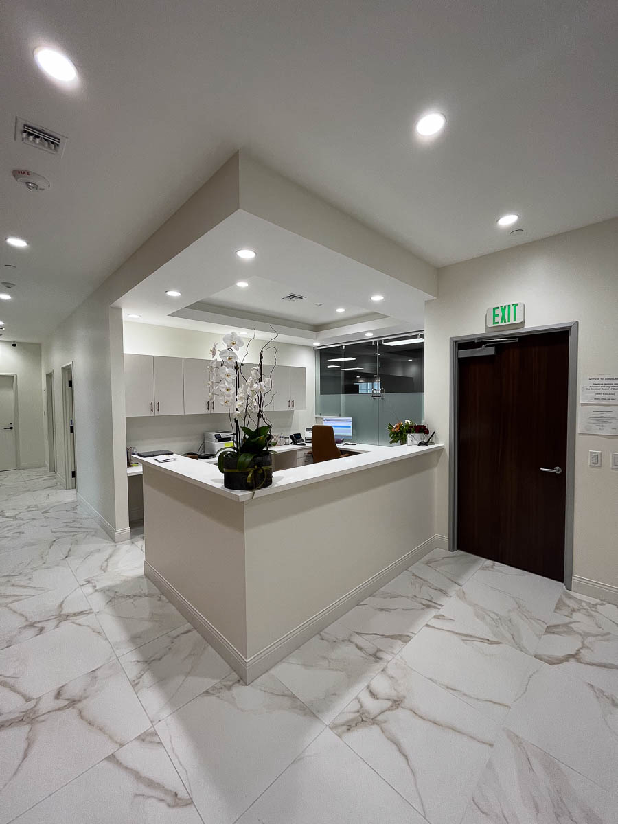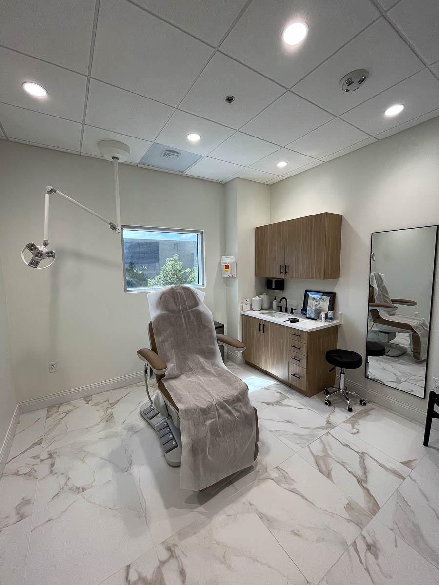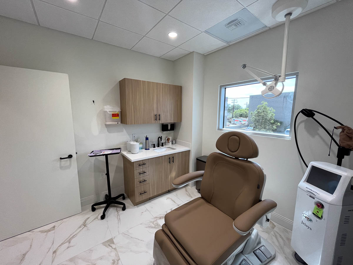 Full interior T.I. remodel for an upscale custom Dermatology Center. On the second floor of medical building.